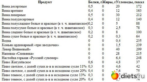 Лидируют по количеству калорий пунши (260 ккал), кальвадос (325 ккал) и ликёры (345 ккал).